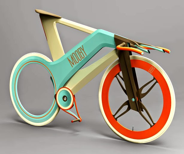 The frame structure is made of aluminum alloy or composite materials, while the plates are made of fiberglass covered with fabrics or wood, etc. Mechanically the motion is transmitted by a series of gears, connected with a small chain which actuates the orbital wheel. MOOBY Bike was inspired by the single speed and fixed-gear bike, so it doesn’t have brakes for both wheels.