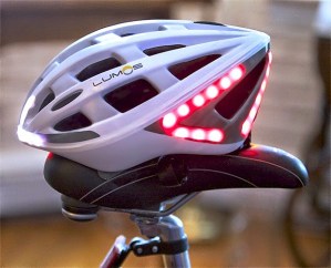 Instead of clipping & zip-tying lights onto your helmet for those cool night rides, the Lumos has a much cleaner & more aerodynamic solution. Brake lights, turn signals & headlights are integrated into this safety certified helmet. A remote handlebar control allows you to activate the blinkers & an accelerometer makes the brake lights automatic. Rechargeable battery, water resistant. Fully funded on Kickstarter.