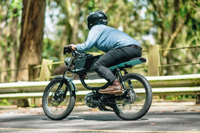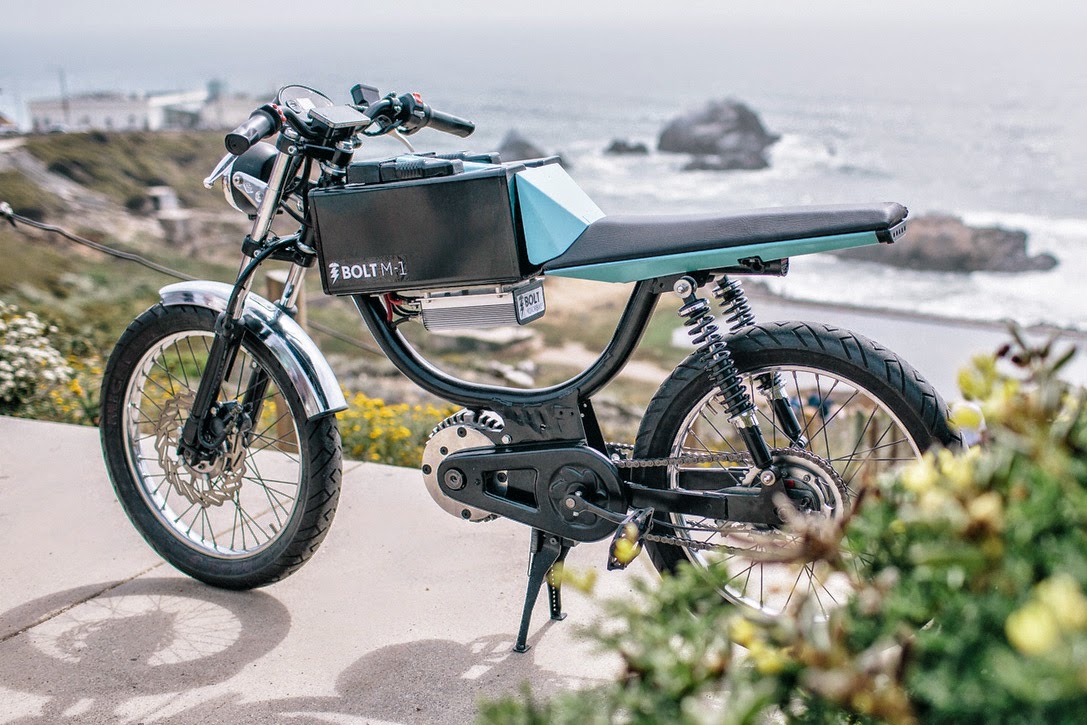 The Bolt M-1 can push out 5,500 watts to hit speeds up to 40mph, or it can be scaled down to 1,000 watts to be ridden like an e-bike. It relies solely on battery power and doesn’t use any oil or gas. It has varying modes, including an economy mode that limits it to 1,000 watts for a 50 mile range and a Sport mode that pushes 5,500 watts with a 30 mile range. It features a computerized control system with passcode protection, a USB phone charger, and a Bluetooth-connected mobile application. The Bolt M-1 charges to 90 percent in just 1.5 hours. Also notable is that it weighs just 140 pounds, so it’s not nearly as heavy as a motorcycle.