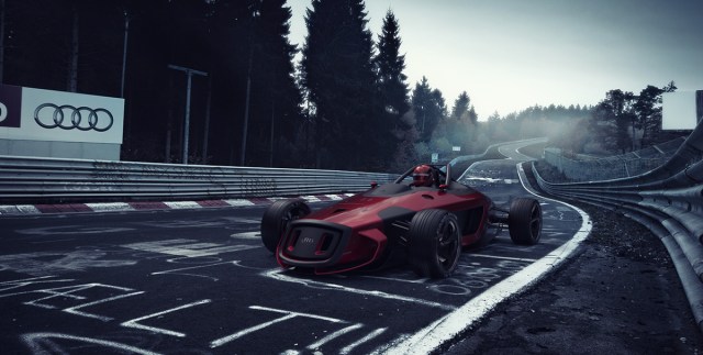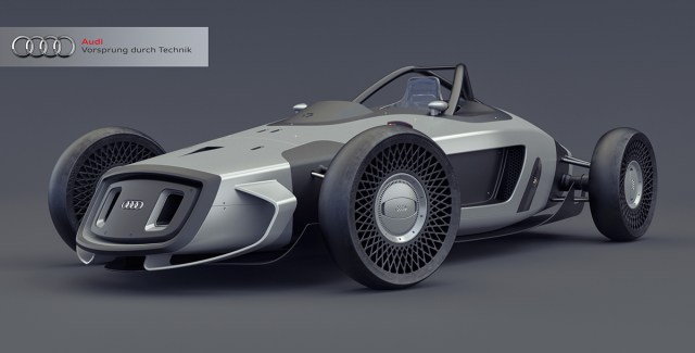 The vehicle is a solid blend of futuristic and classic, paying homage to the beloved 1930s Silver Arrows. Instead of equipping the race car with a V16 or V12 engine though, Burov opted for a modern electric power train to power this beast. Both the front vented nose and rear grated area bear the classic Audi 4-ring logo, while carbon fiber accents throughout and a set of super spoked rims round out the look.