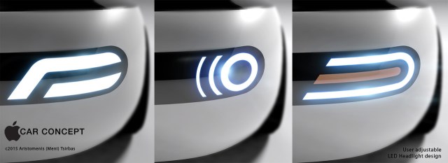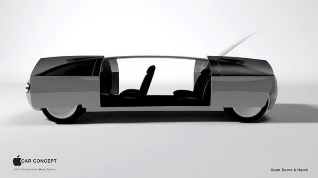 This concept explores a semi-autonomous electric car in the minimalist tradition of Apple design. It features external high resolution LED screens front and back for user selected headlight/taillight designs and includes structural body modeling with discreet hatch and doors that open laterally.
