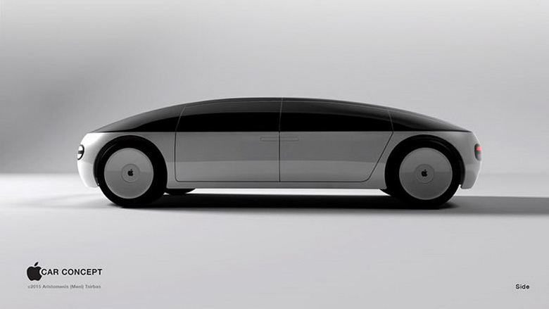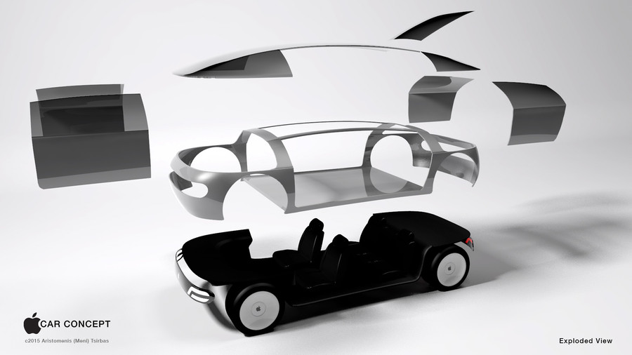 This concept explores a semi-autonomous electric car in the minimalist tradition of Apple design. It features external high resolution LED screens front and back for user selected headlight/taillight designs and includes structural body modeling with discreet hatch and doors that open laterally.