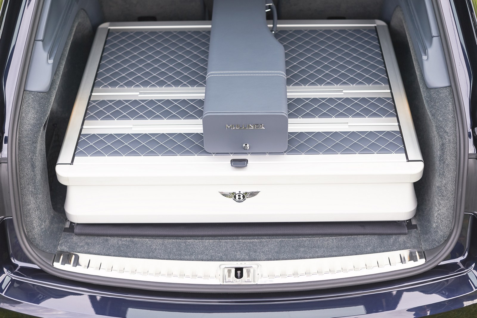 Since the crossover was designed for hunting, the Bentayga Field Sports by Mulliner comes with a leather-trimmed case which can hold two shotguns. The case rests on top of the storage unit and fits in between the rear seats.